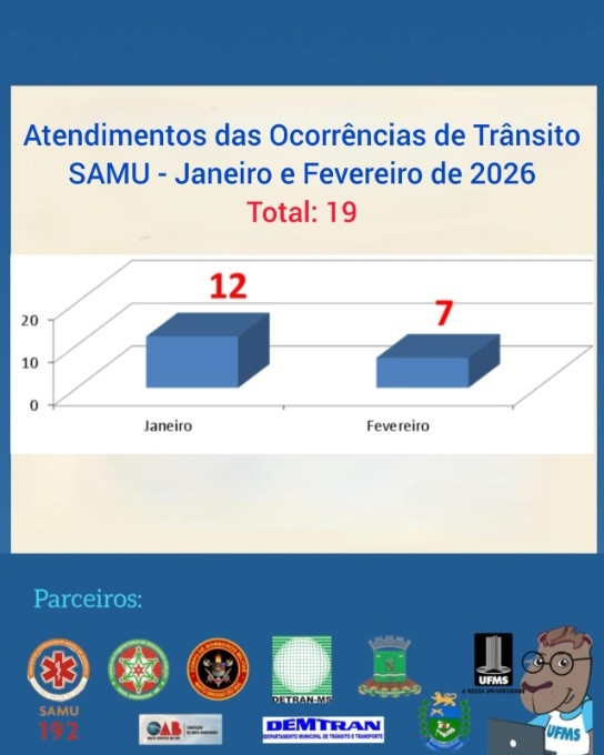 As estatísticas também mostram o apoio das equipes de emergência no atendimento às vítimas. No mesmo período, o Serviço de Atendimento Móvel de Urgência (SAMU 192) registrou 19 atendimentos ligados a acidentes de trânsito, sendo 12 ocorrências em janeiro e 7 em fevereiro.