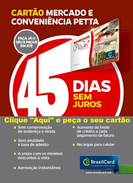 Facilidade e tranquilidade na palma da sua mão! O Mercado e Conveniência Petta oferece a você o Cartão BrasilCard, a…