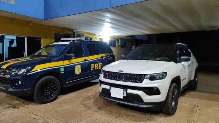 A PRF (Polícia Rodoviária Federal) recuperou um Jeep Compass roubado e com placas falsas durante uma fiscalização na BR-262, em Água Clara, na madrugada de quinta-feira (13/06).